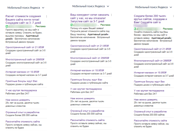 Пример РСЯ объявлений:
