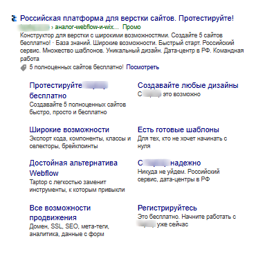 аналог зарубежных сервисов, таких как Webflow и Wix